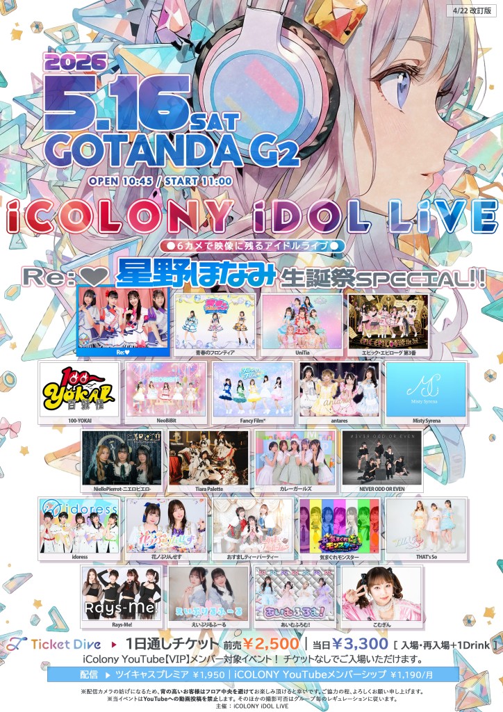 2026年5月16日(土)NielloPierrot-ニエロピエロ-『ICOLONY IDOL LIVE 117 // DAY1』@ GOTANDA G2
