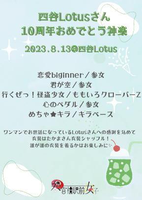 【⛩ 2023年8月13日(日)四谷Lotusさん10周年おめでとう神楽@四谷Lotus ⛩】