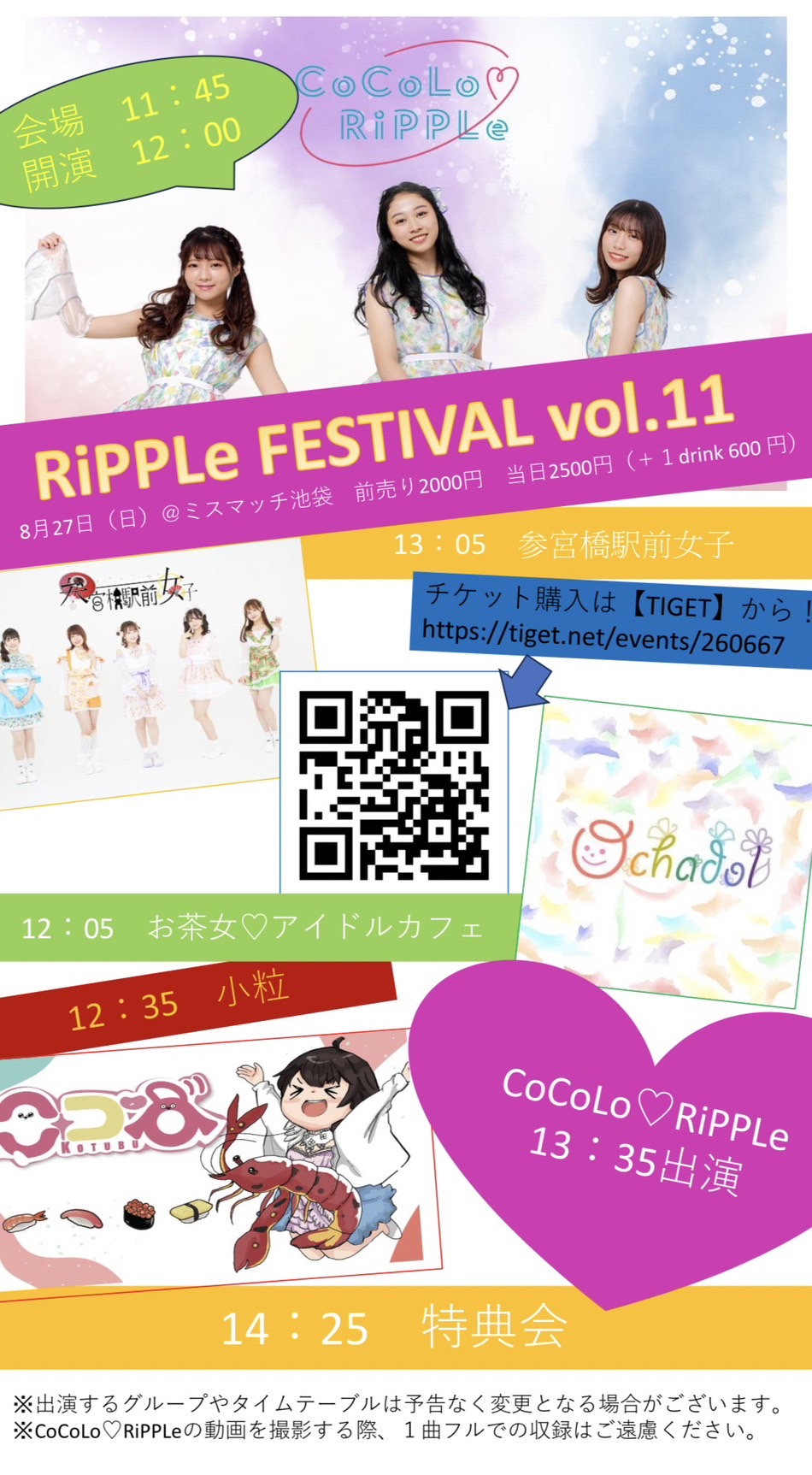 出演予定:参宮橋駅前女子、CoCoLo♡RiPPLe、お茶女♡アイドルカフェ、小粒 and more…