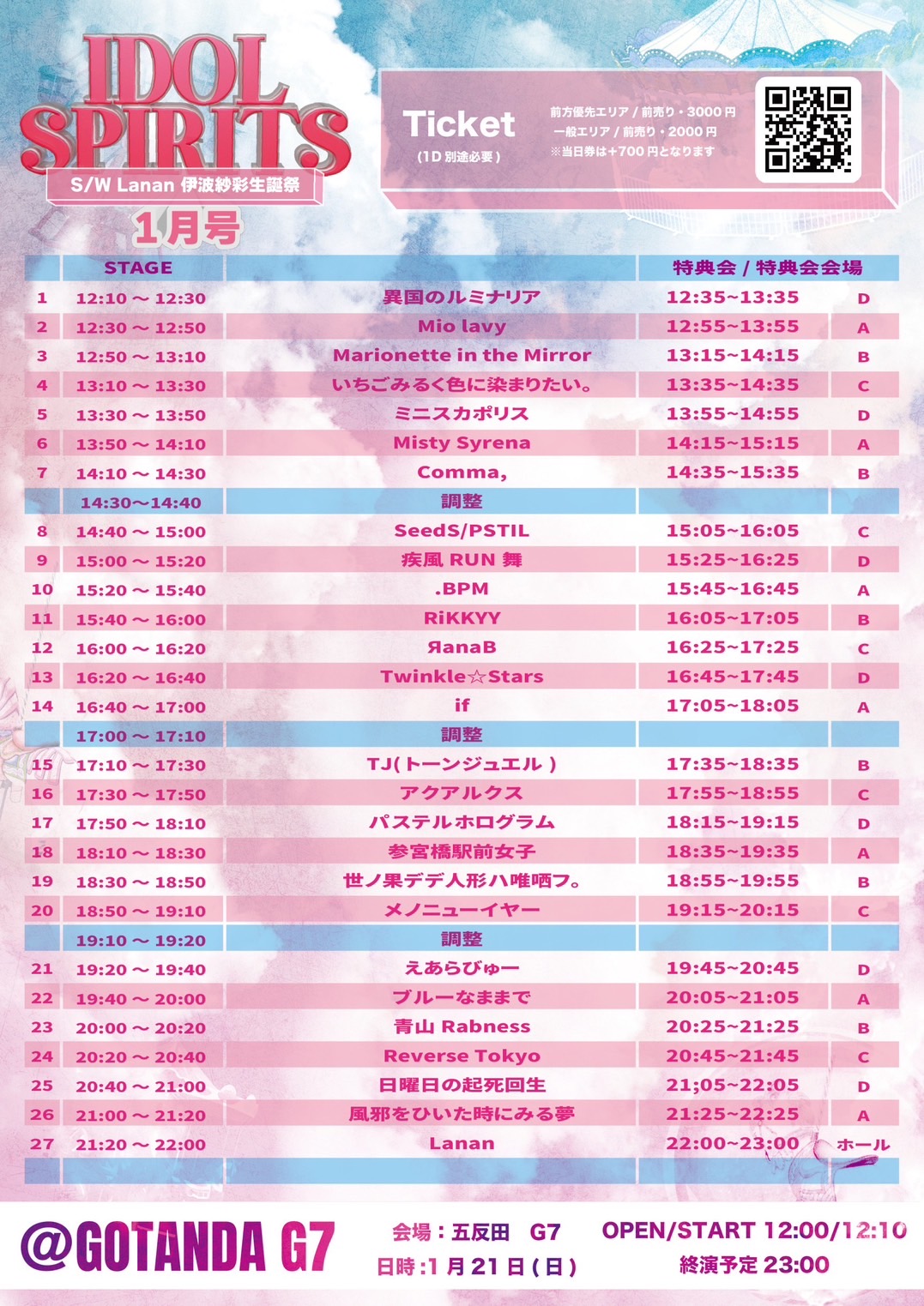 料金:前方優先エリア 前売り・3000円/一般エリア 前売り2000円
