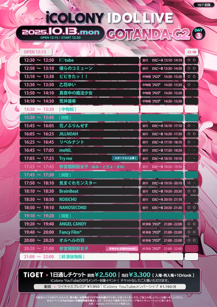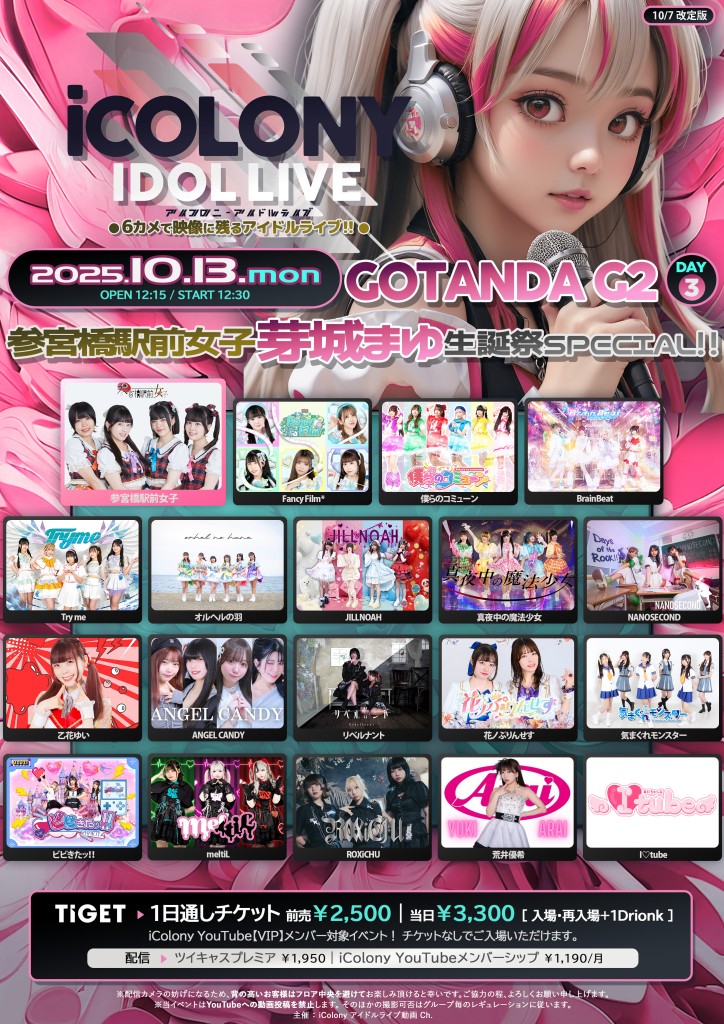 公演名:『ICOLONY IDOL LIVE 98 // DAY3~参宮橋駅前女子 芽城まゆ 生誕祭SPECIAL!!! ~』@ GOTANDA G2