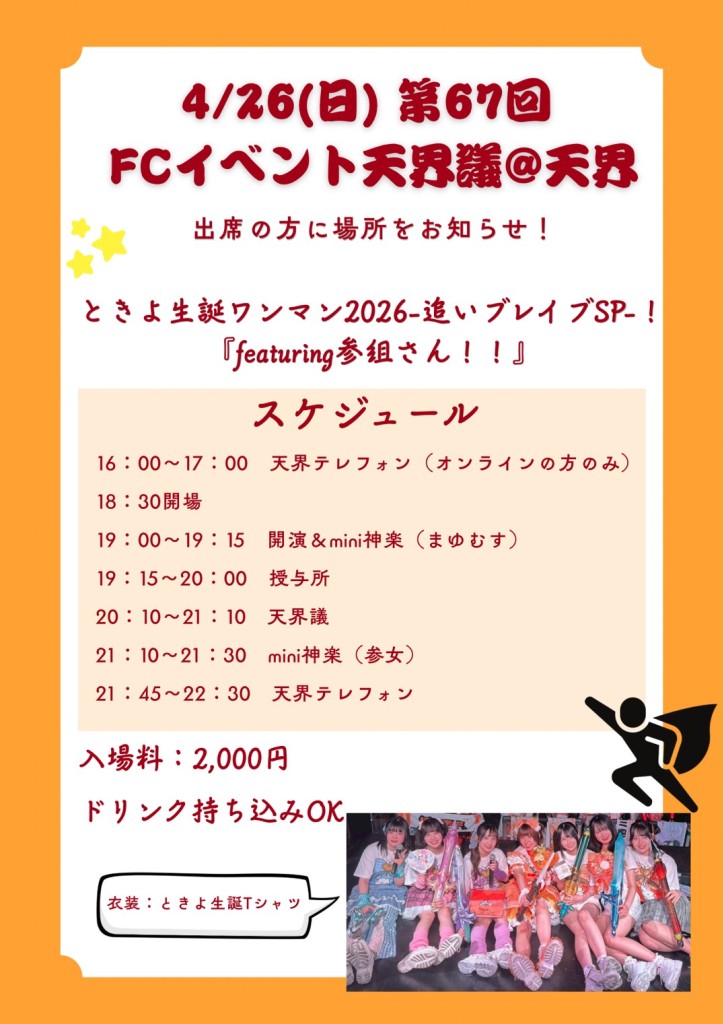 参女 2026年4月26日(日)FC限定 第六十七回天界議(オフライン&オンライン) 参上!!