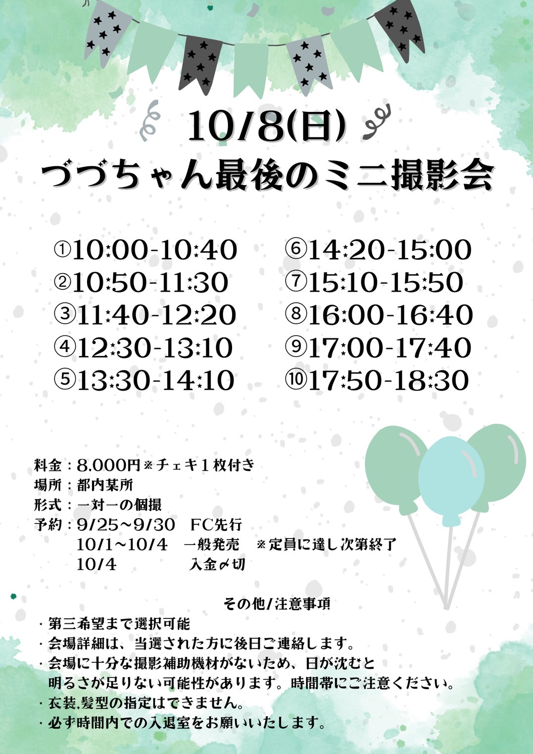 ※その他詳細はご予約頂いた方へ追ってご連絡いたします。