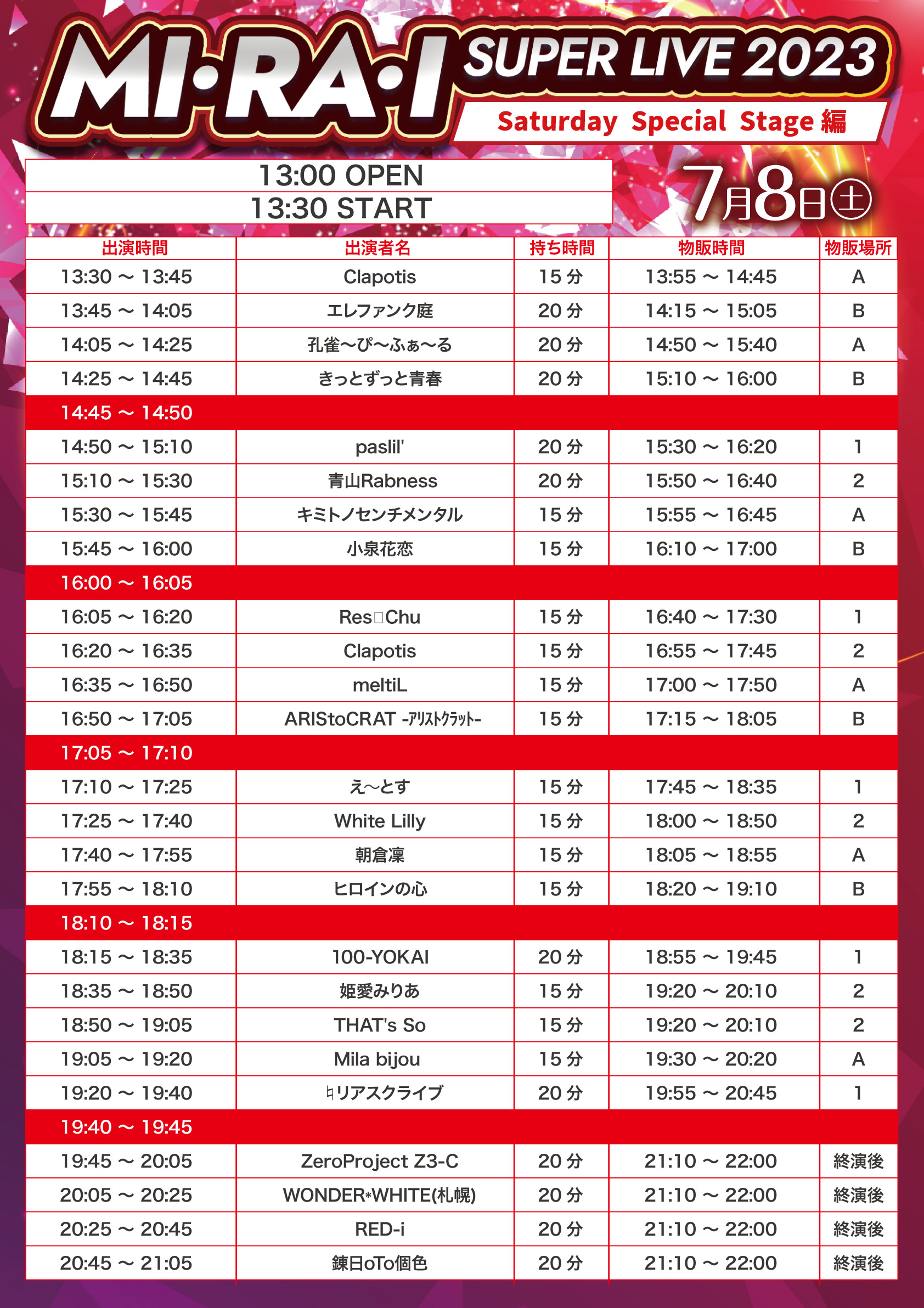 公演名:「MI・RA・I SUPER LIVE 2023」Saturday Special Stage編