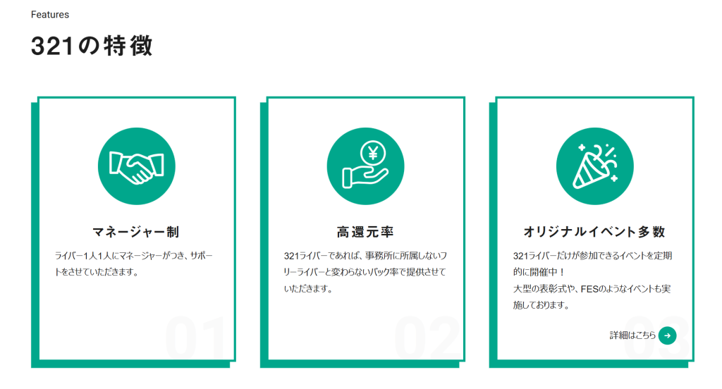 321とは、国内最大級の所属人数を誇る業界No.1のライバーマネジメント事務所です。