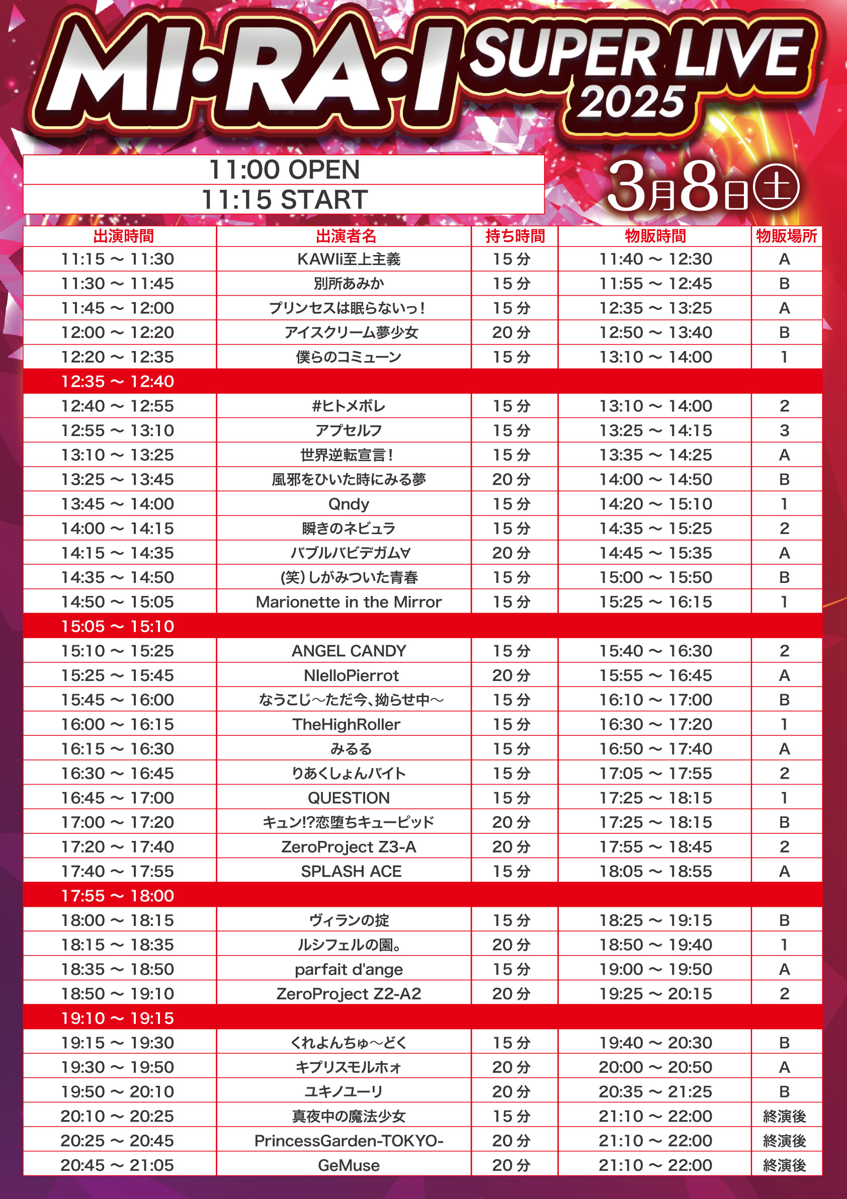 2025年3月8日(土)ニエロピエロ『MI・RA・I SUPER LIVE 2025』@渋谷近未来会館